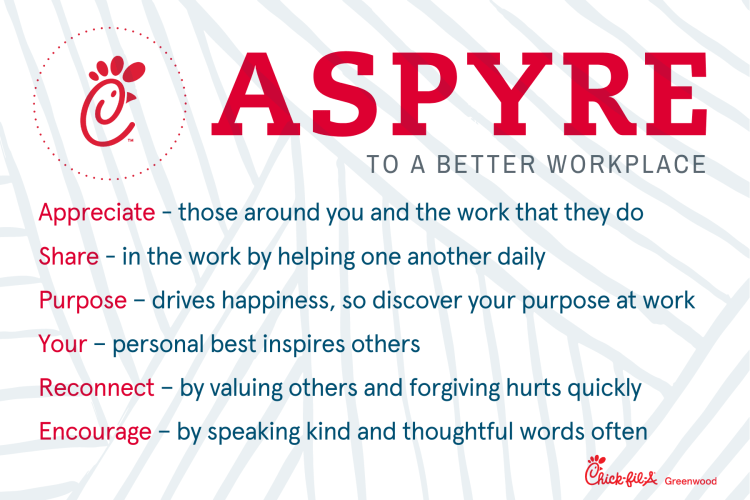 Chick-fil-A Greenwood where we ASPYRE to grow together & create a better workplace